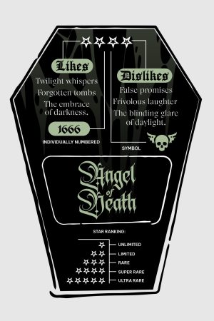 The ANGEL OF DEATH is the guardian of the twilight realm. With a skull-faced gaze and majestic fallen angel wings. this plush harbinger guides lost souls with silent grace. Clad in contrasting black and white. his glowing fabric illuminates the path to eternity. Perfect for yourself. or gifting!