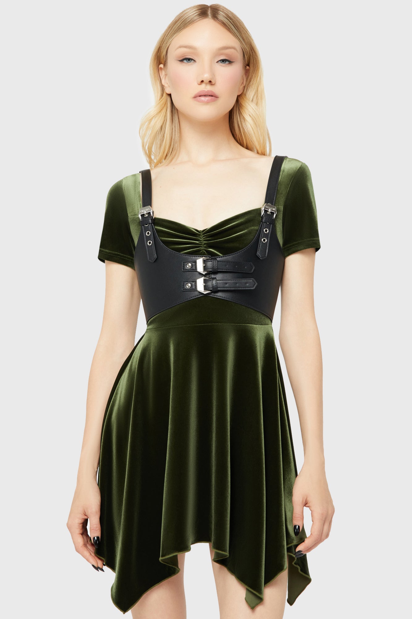 – Soft feel. stretch duel-toned velvet fabric.