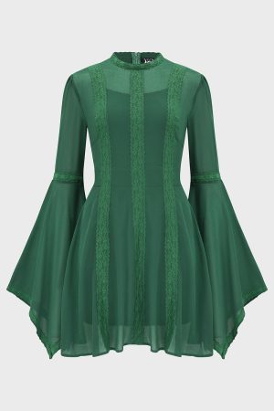 – Long flared sleeves.