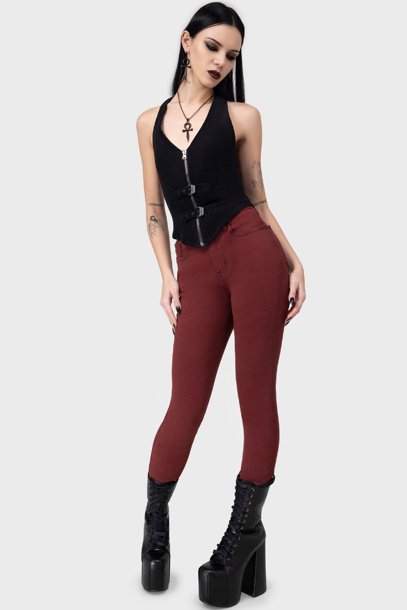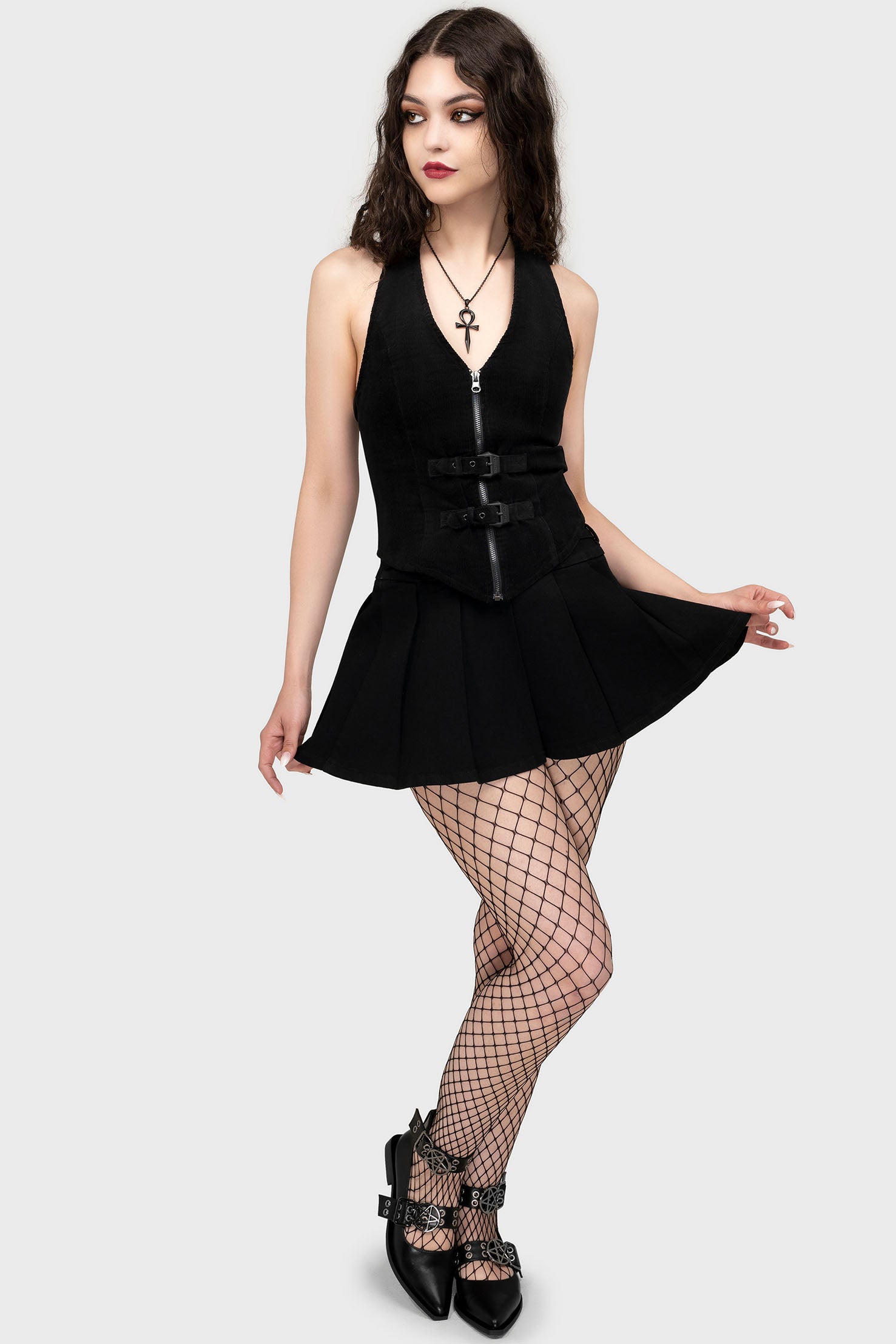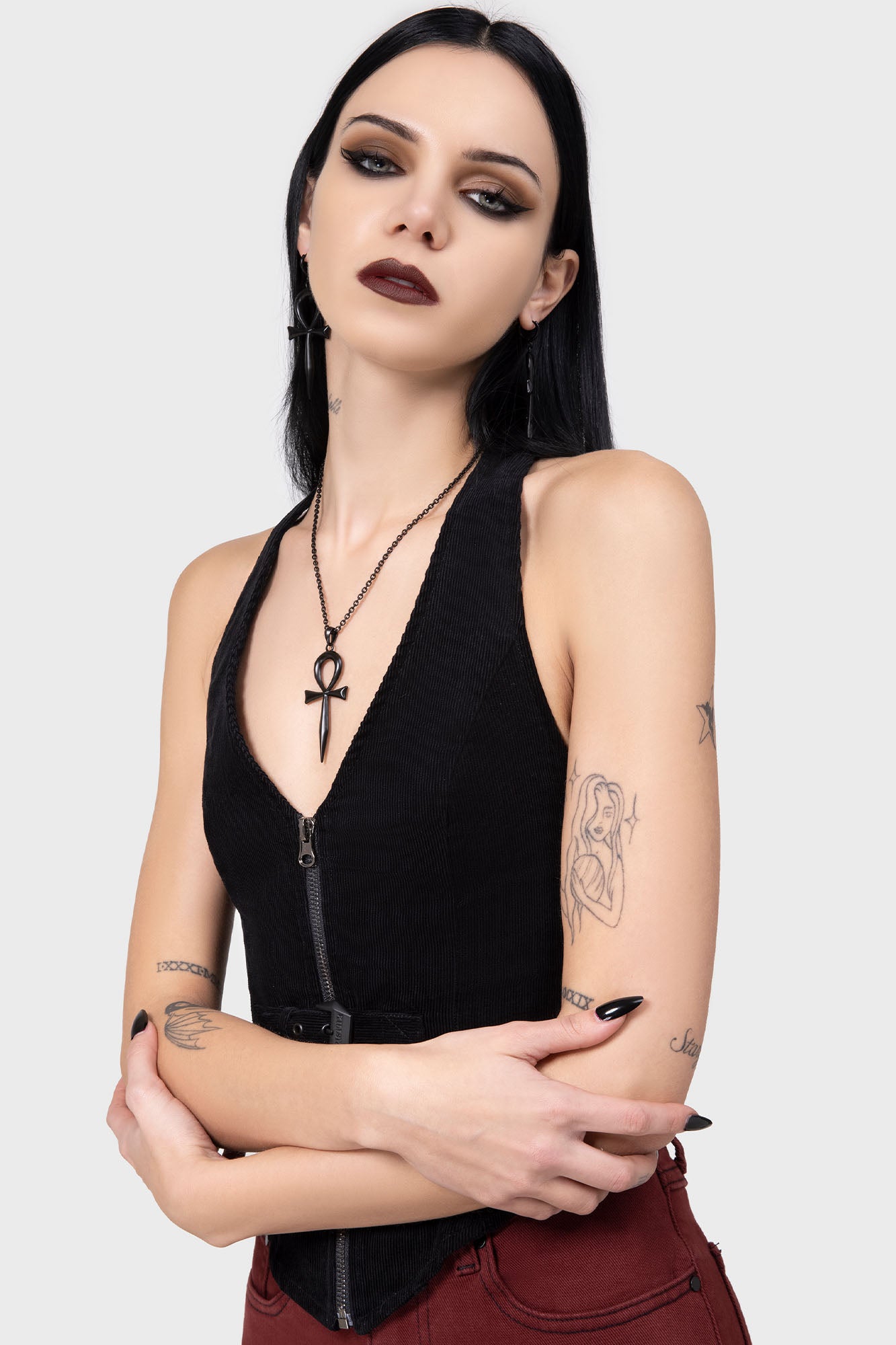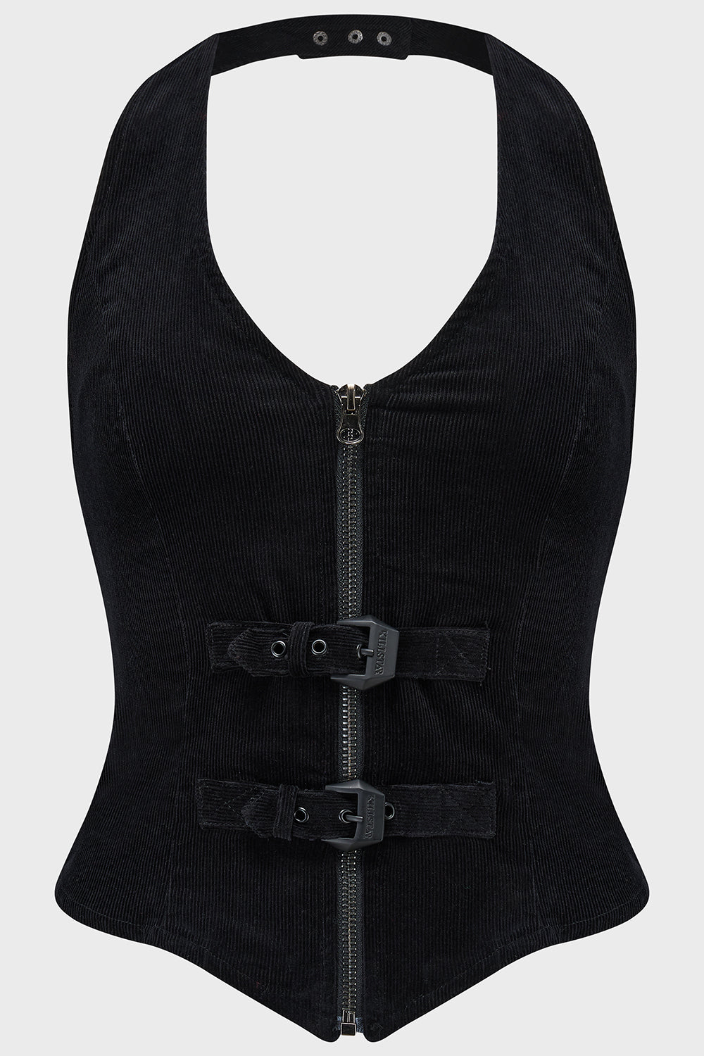 – Halterneck strap. with adjustable poppers.