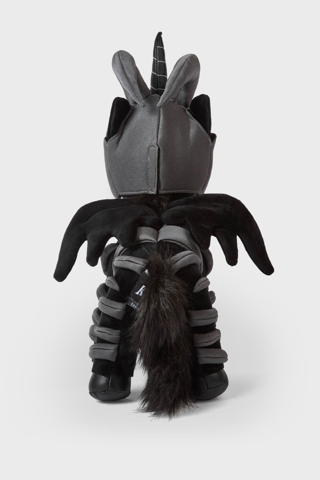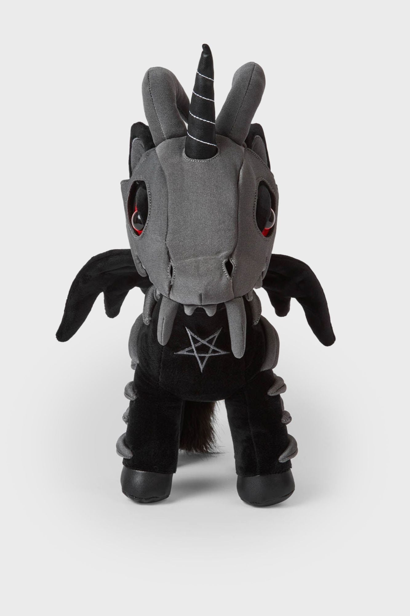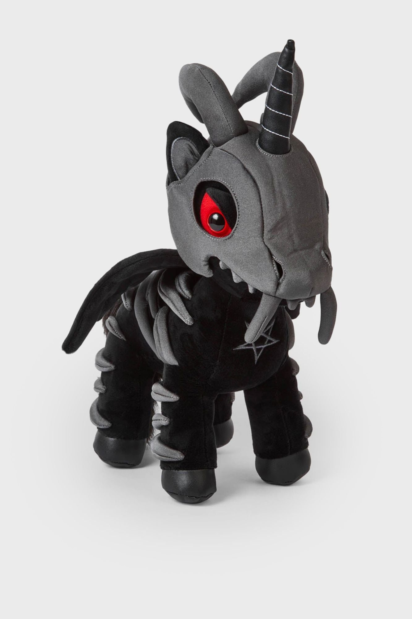 Little demon unicorn. the darkest joy i know. Demonimare: Sulphur is a masked fiend with glistening red eyes. 3D plush contrasting details and a delicate embroidered sigil. With a removable mask and faux leather accent horn these creatures wreak havoc with every hiss.