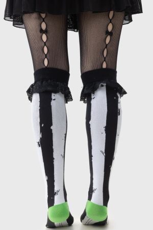Distressed Stripe Knee High Socks