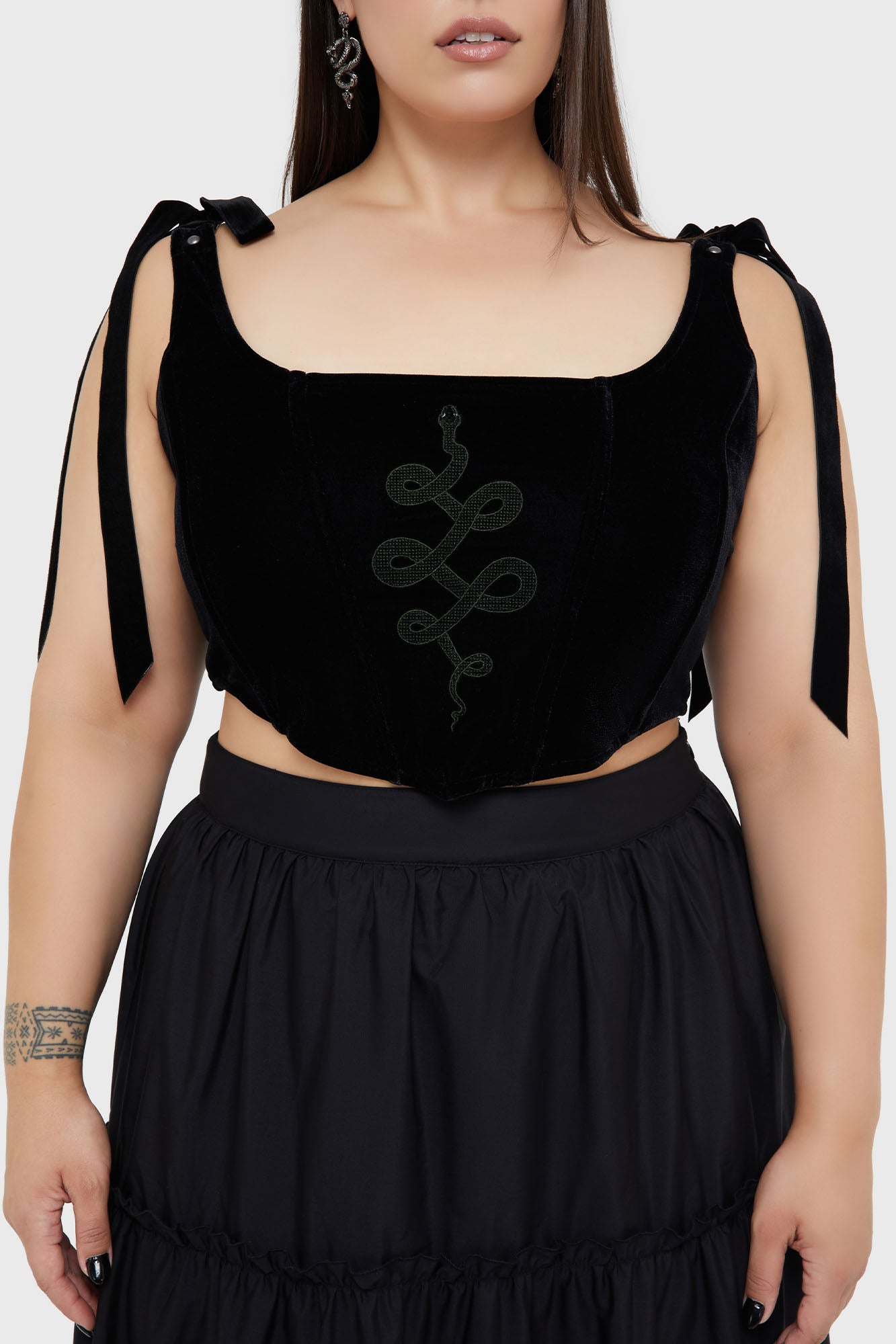 – Unique snake embroidery.