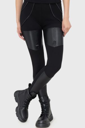 – Statement leggings in smooth ponti and PU fabric.