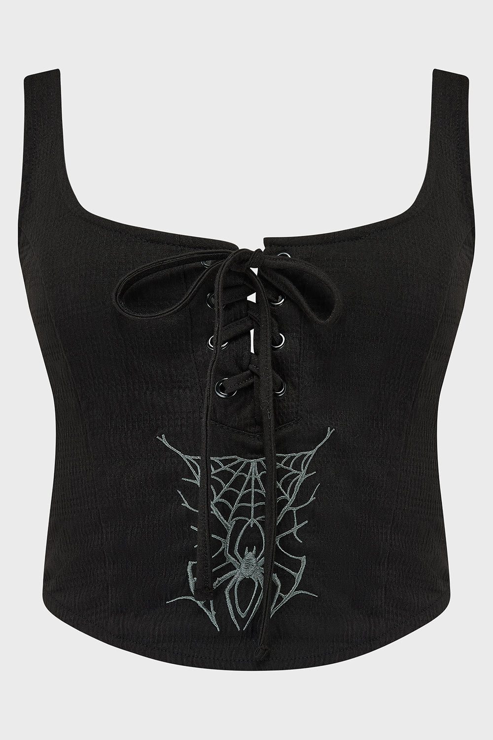 – Unique spider embroidery on front panel.