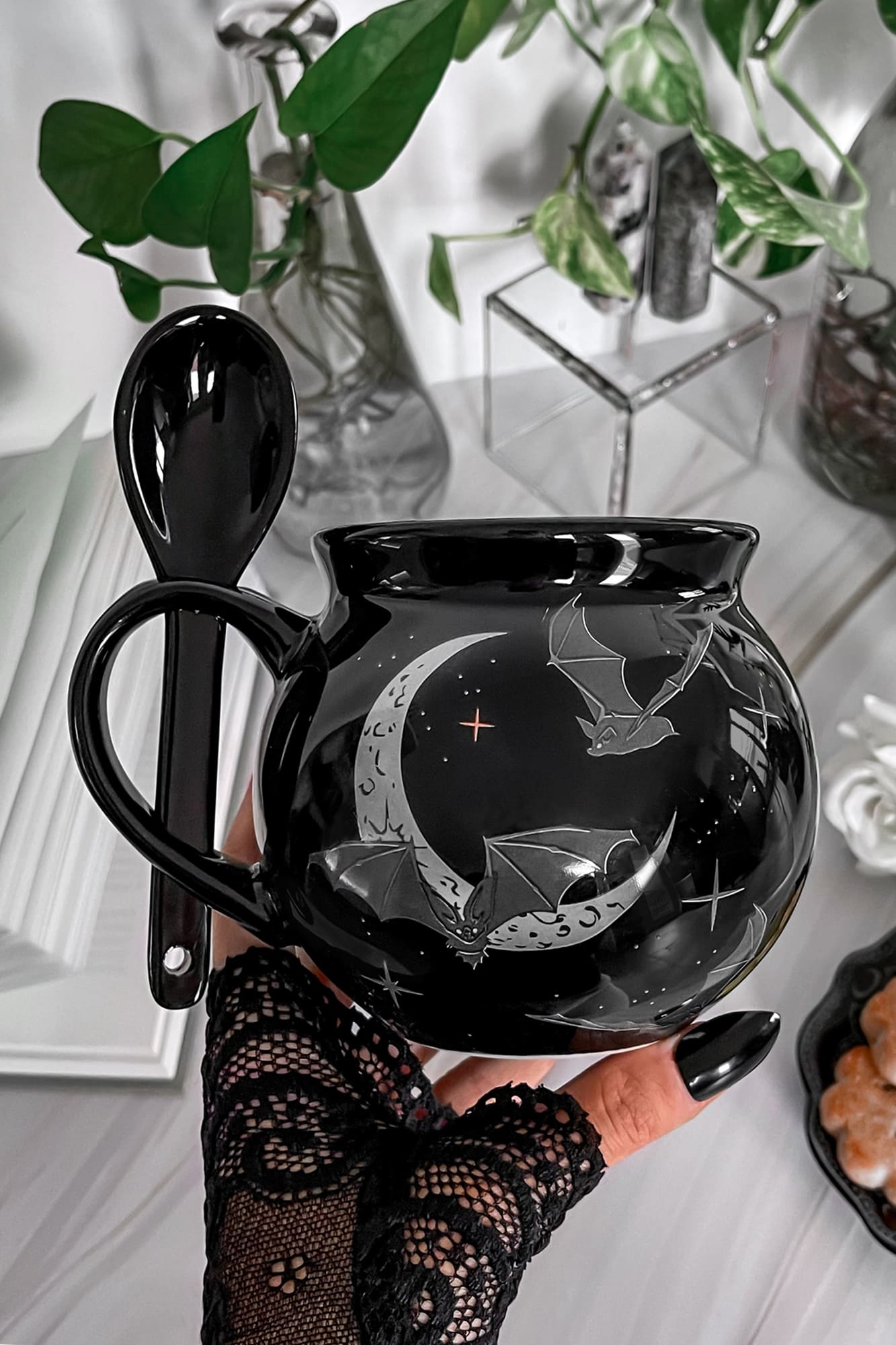 – Statement ceramic mug with spoon.