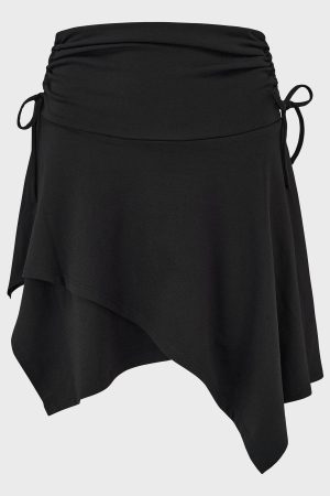 – Gathered waistband with adjustable ties in side seam channels.