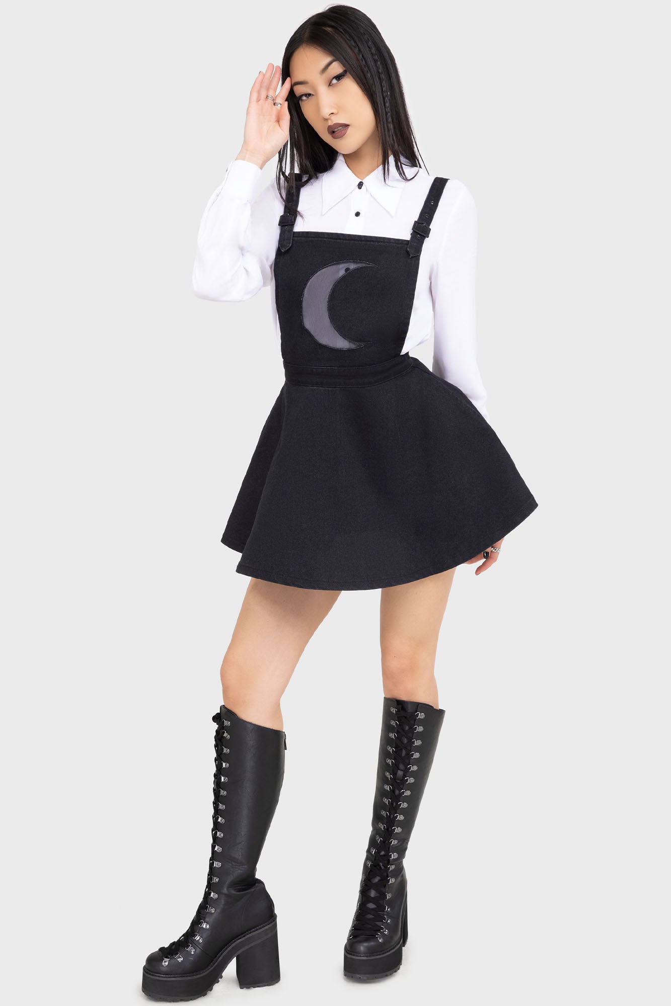 – Soft denim with mesh moon.