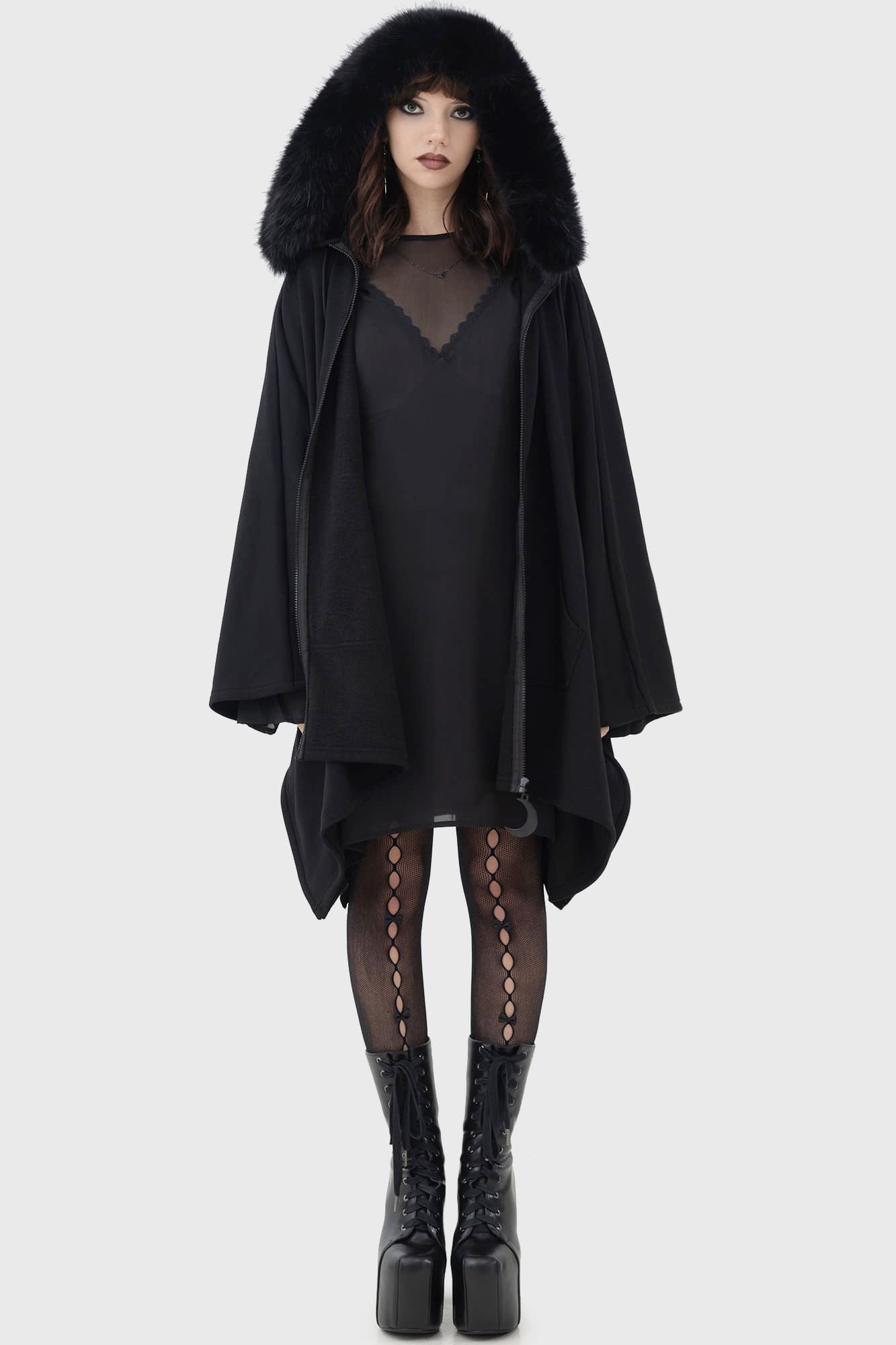 With KILLSTAR branding. Main Fabric: 70% Polyester 26% Viscose 4% Elastane. Faux Fur: 100% Polyester. Excluding Trims.