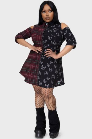 With KILLSTAR branding. Fabric 1 : 68% Viscose 28% Polyester 4% Elastane Fabric 2 : 72% Viscose 24% Polyamide 4% Elastane.