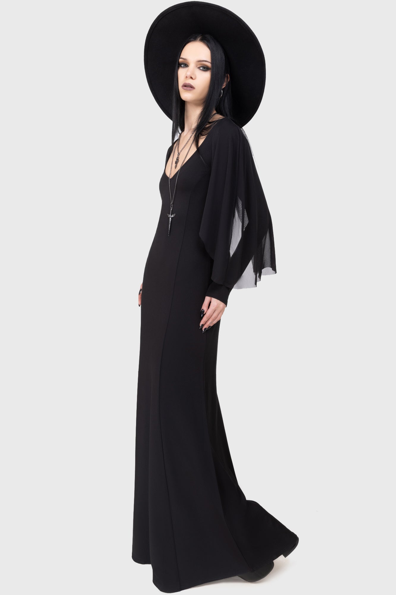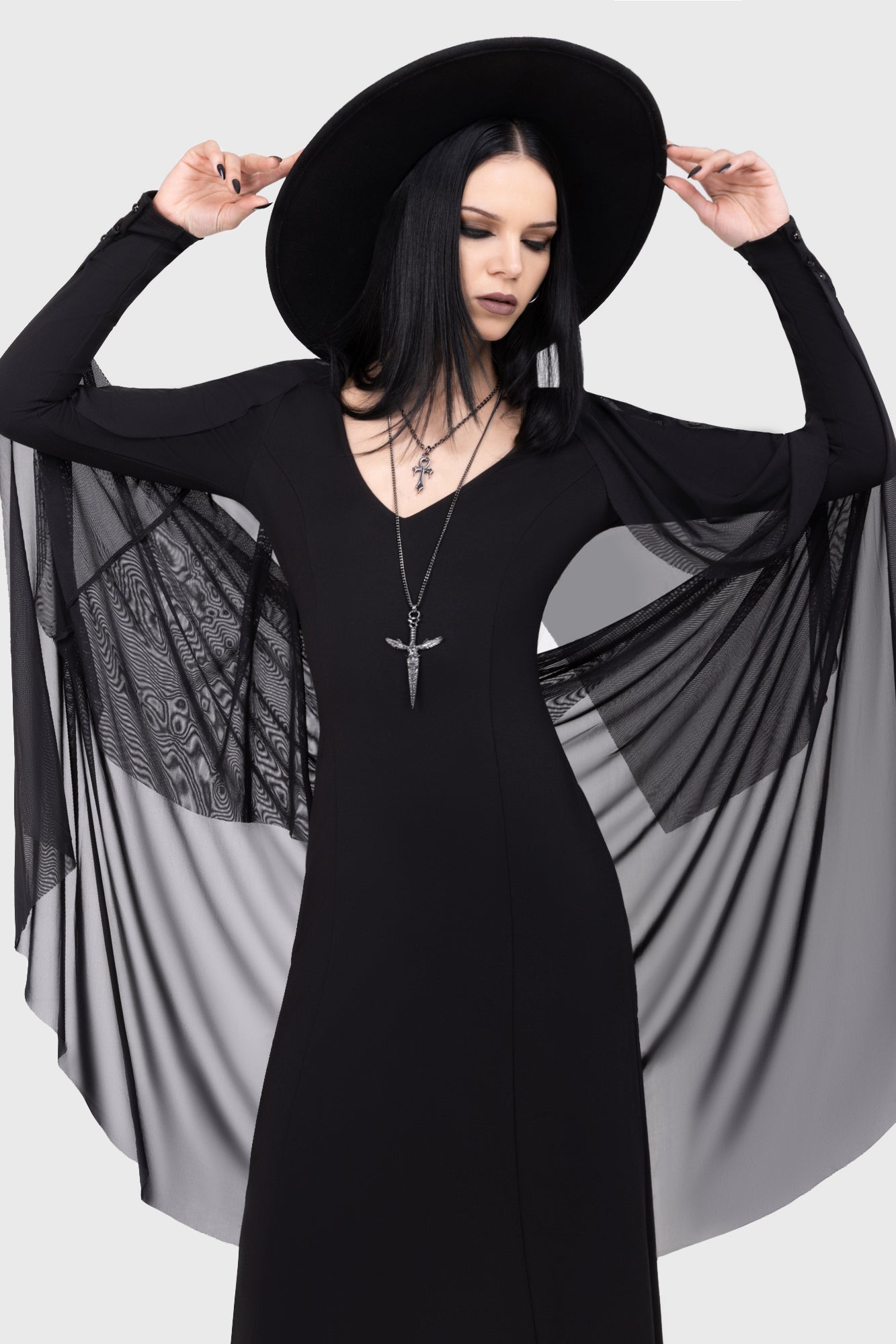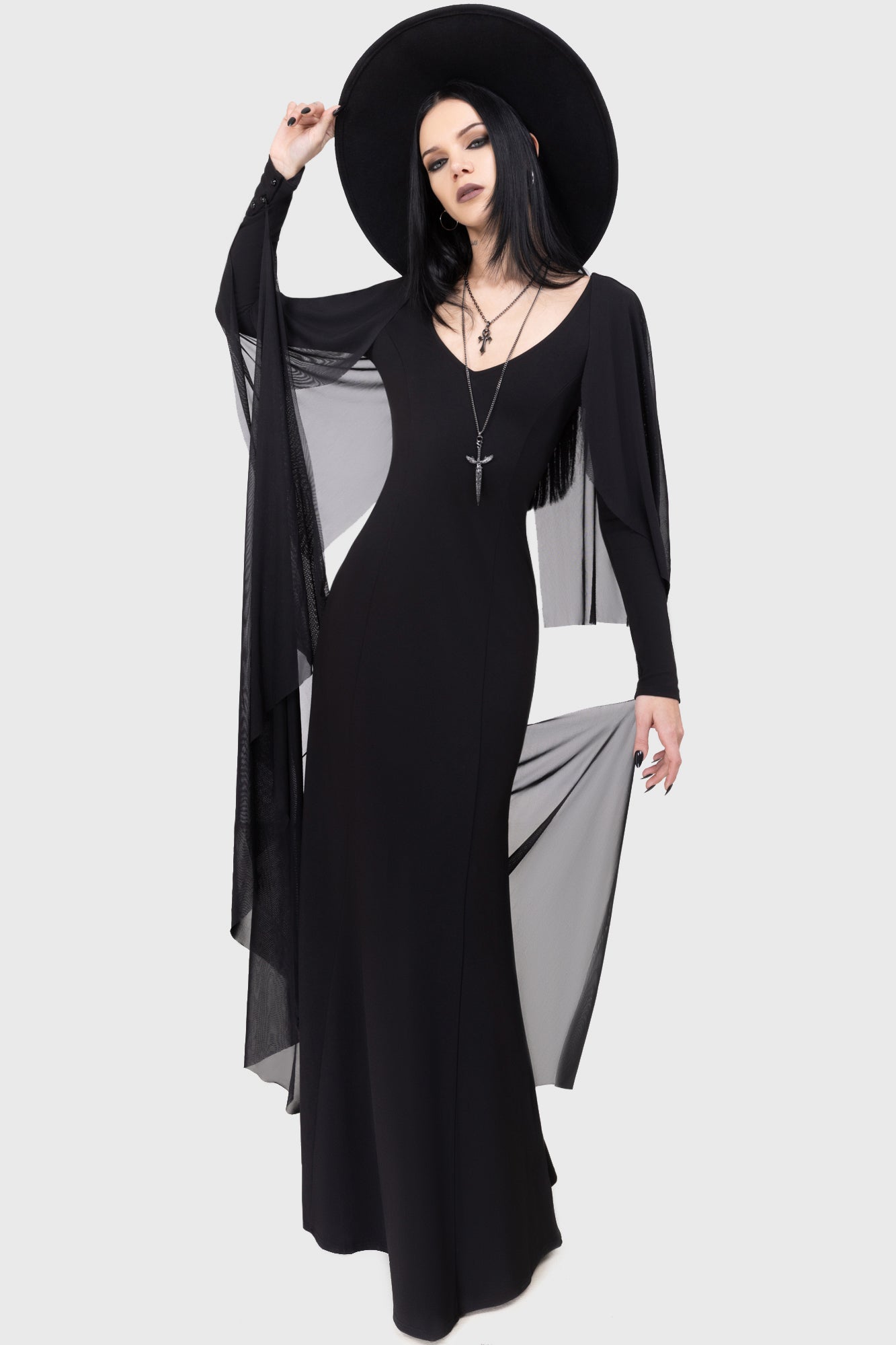 – Detachable mesh flared sleeve detail.