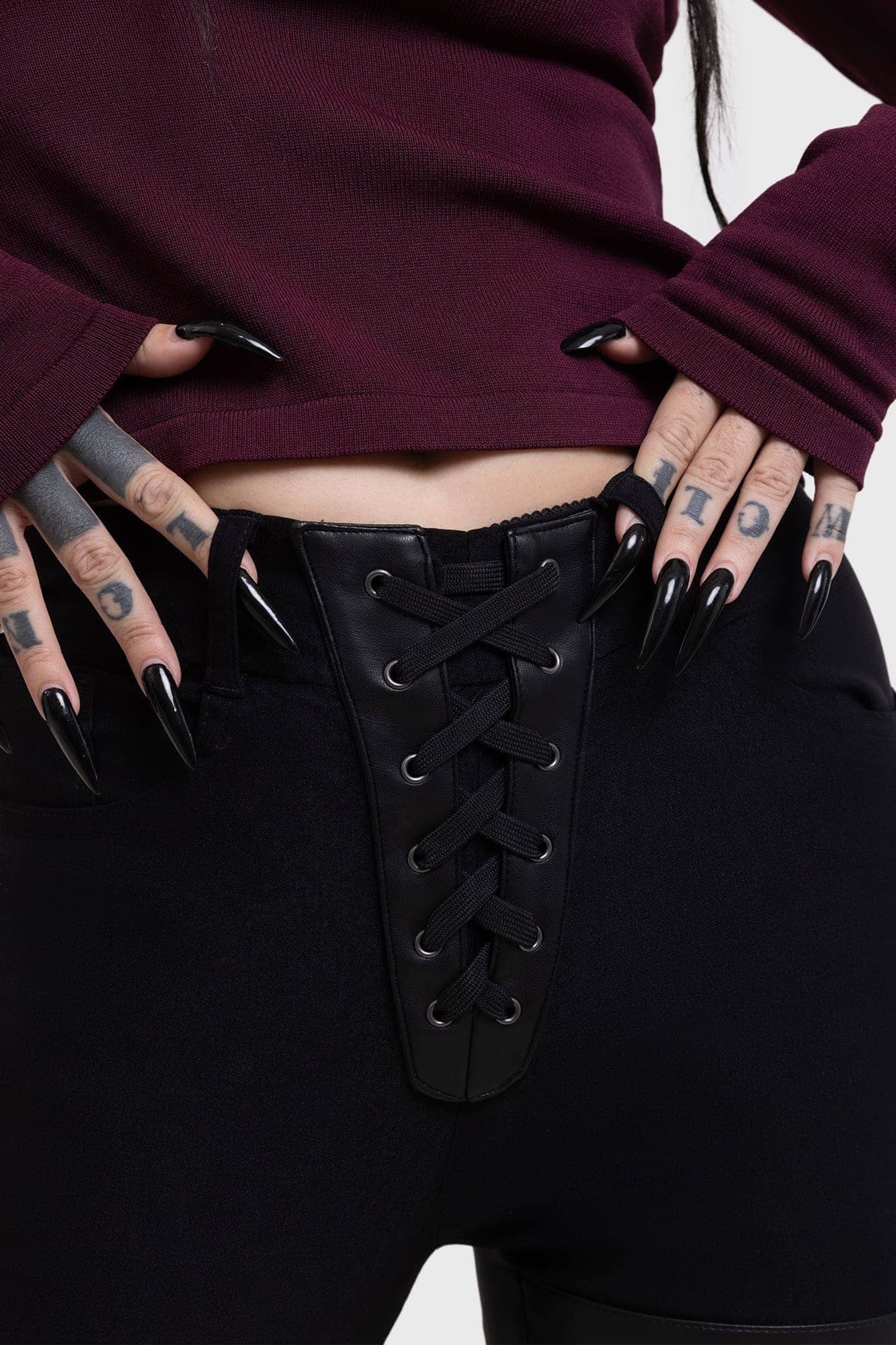– Lace up detail.
