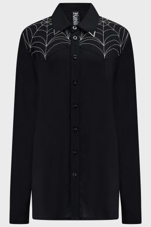 – Contrast stitching web embroidery on front yoke panels.